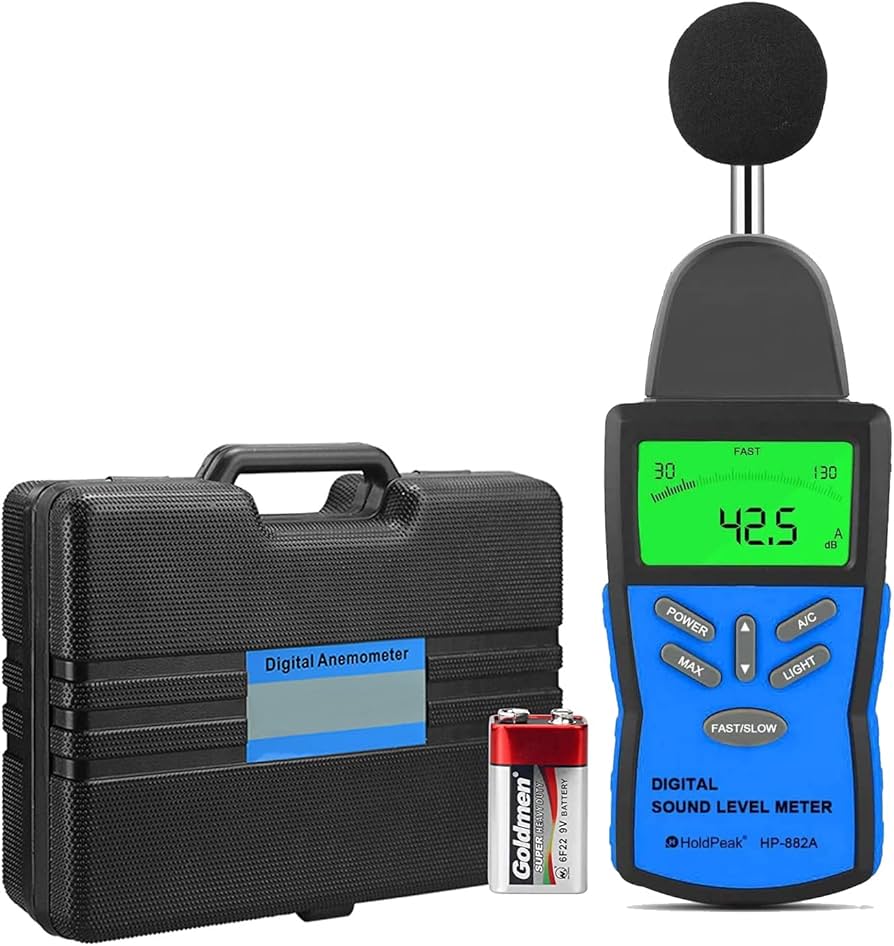 Utiliza el decibelímetro HP-882A para muestreos de medición puntual y determinar si estás por encima o por debajo de las normativas. Su retroiluminación permite trabajar en condiciones de baja luz. Incluye un maletín de transporte para proteger el equipo de golpes y facilitar su movilidad.